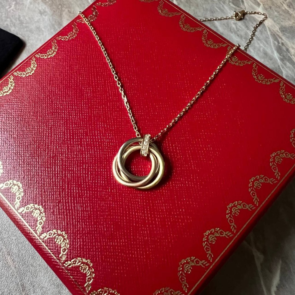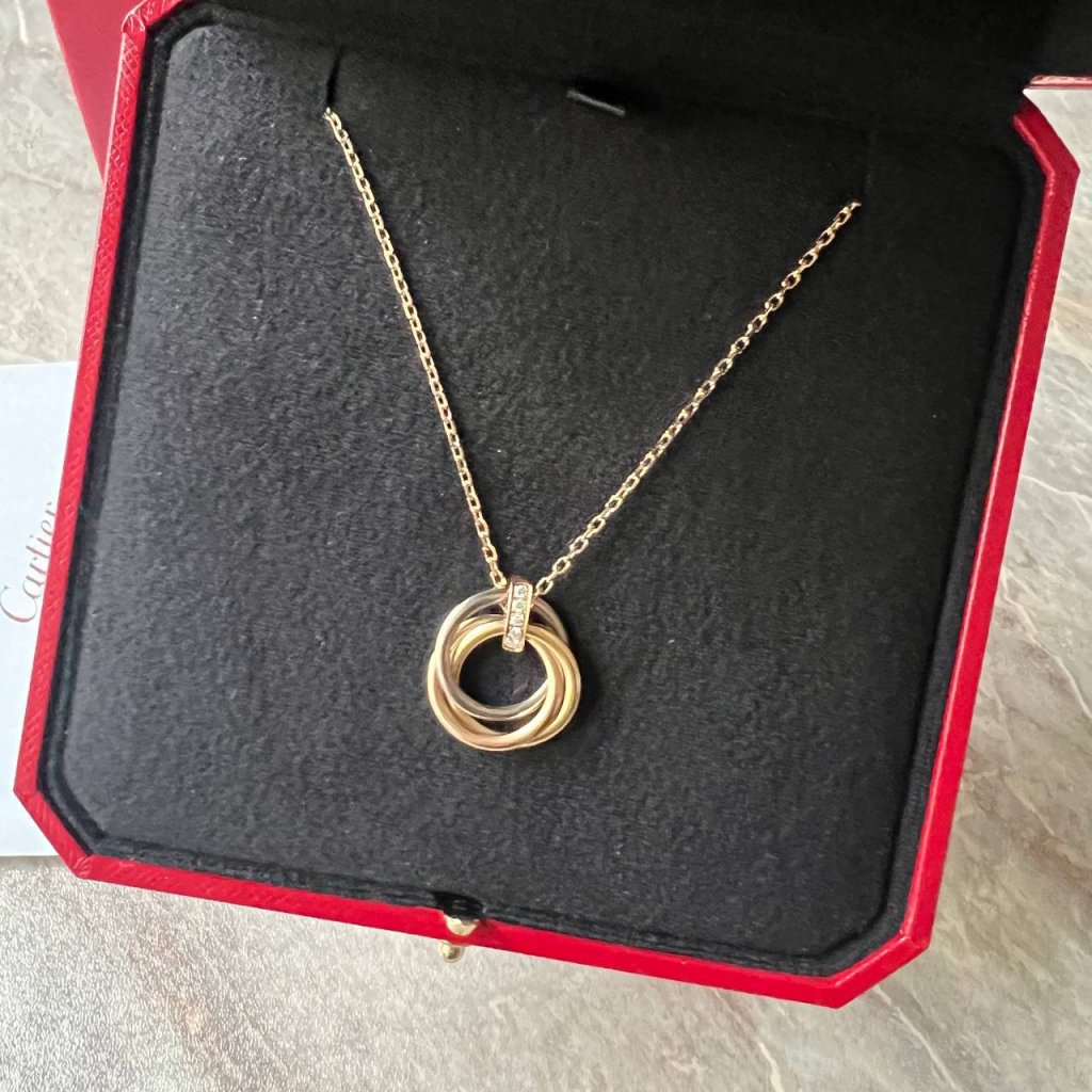 Cartier Trinity náhrdelník s brilianty, medium model. 42cm délka. S certifikátem. Nošený.