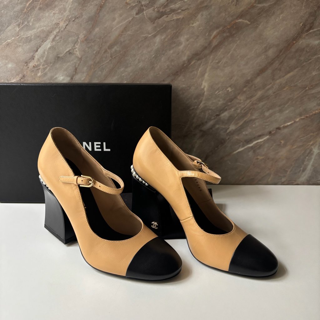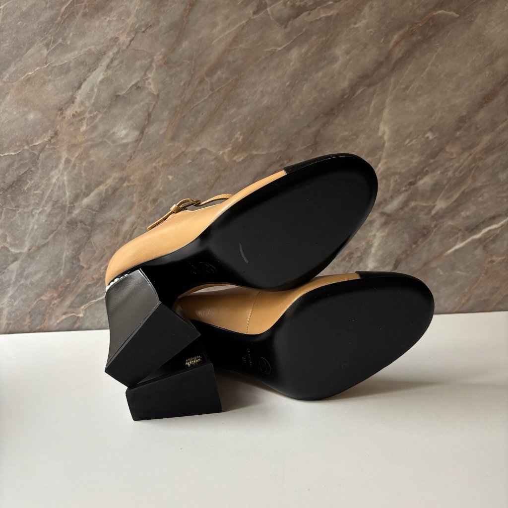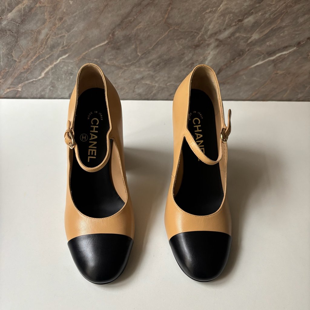 Chanel béžovo černé podpatky. Vel. 38. Skladované. S kopií účtu.