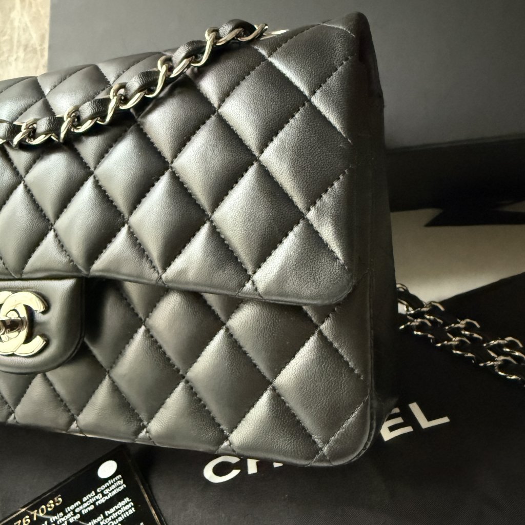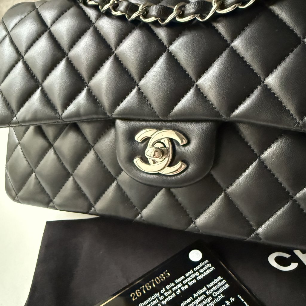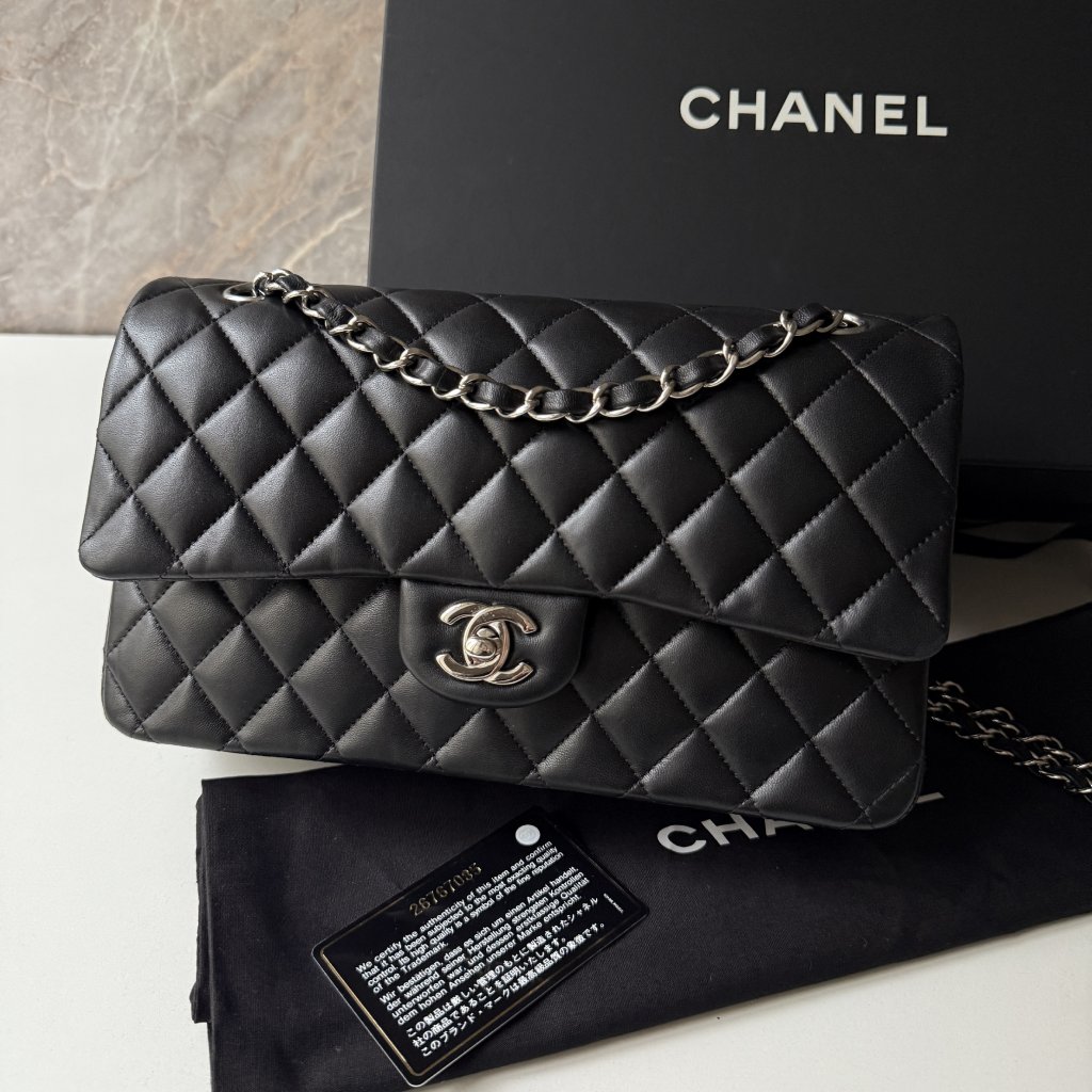 Chanel černá Lambskin medium Flapbag. Skladované, s kartou.