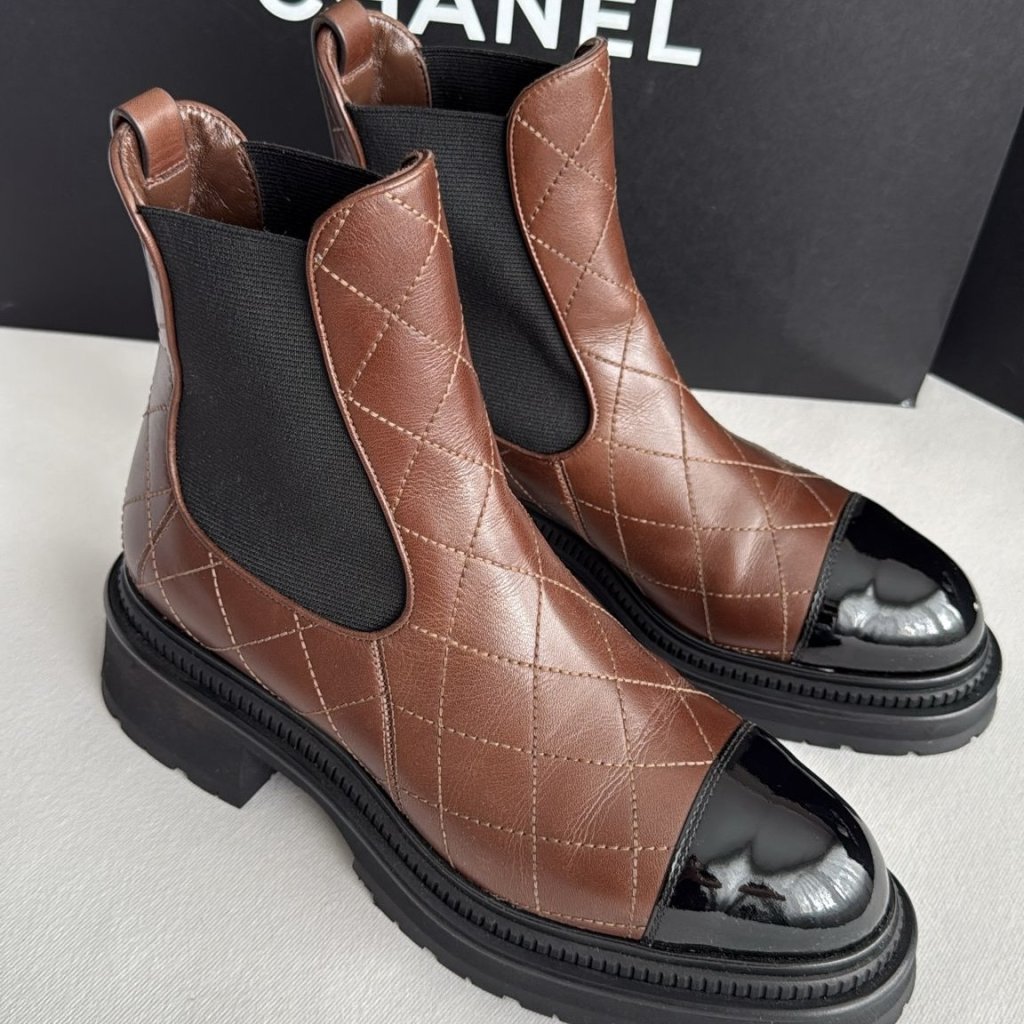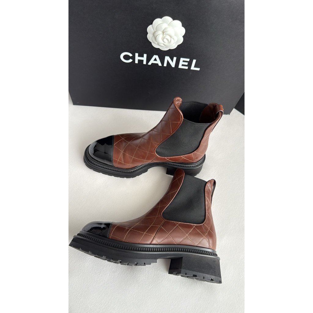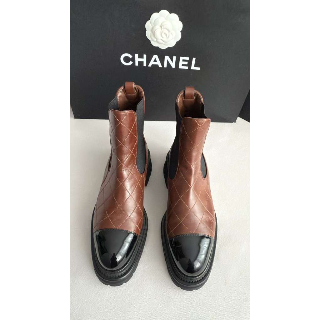 Chanel černo hnědé boots. Vel. 39,5 26cm stélka. 1x nošené. S balením.