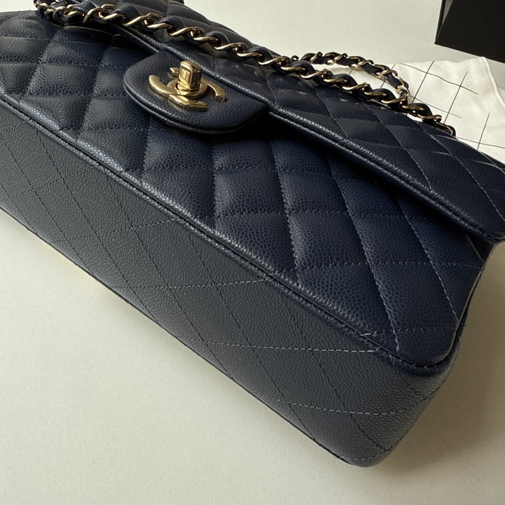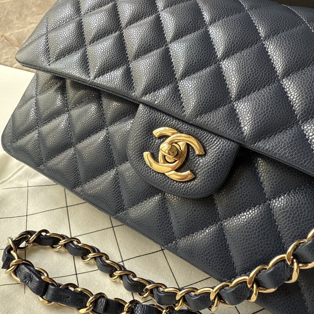 Chanel Classic Double Flapbag. Caviar, medium. Tmavě modrá. Nošené minimálně. S kopií účtu.