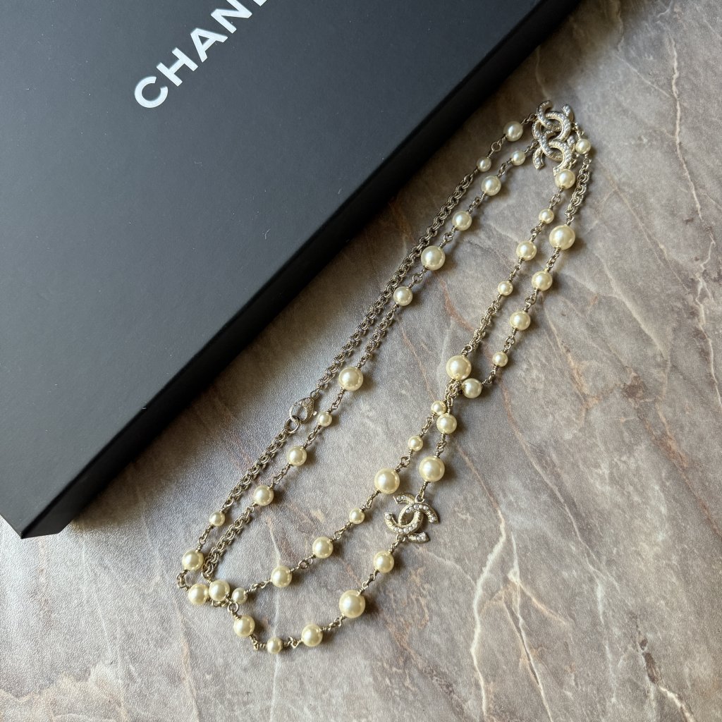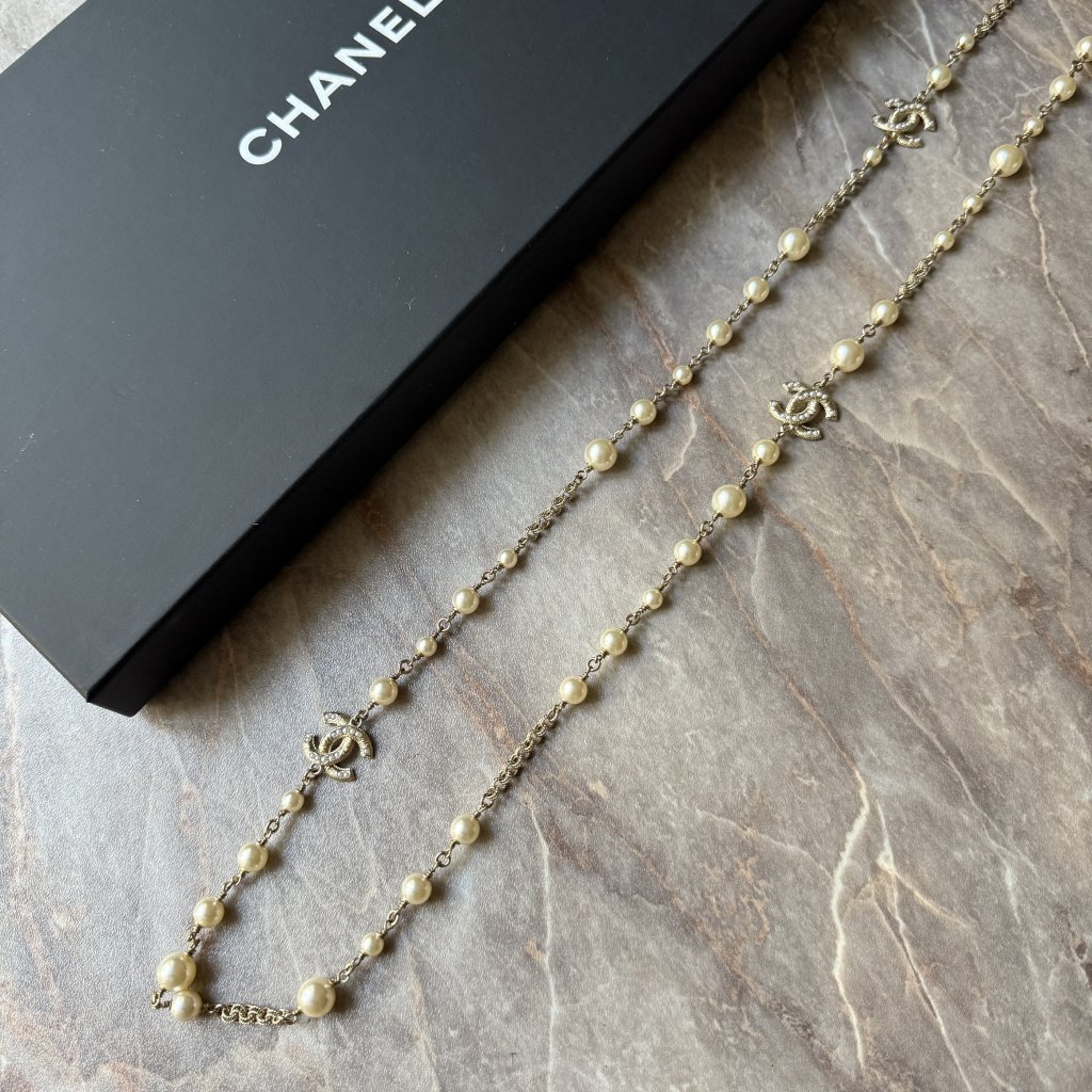 Chanel perlový náhrdelník. Délka 110cm. Nenošené.