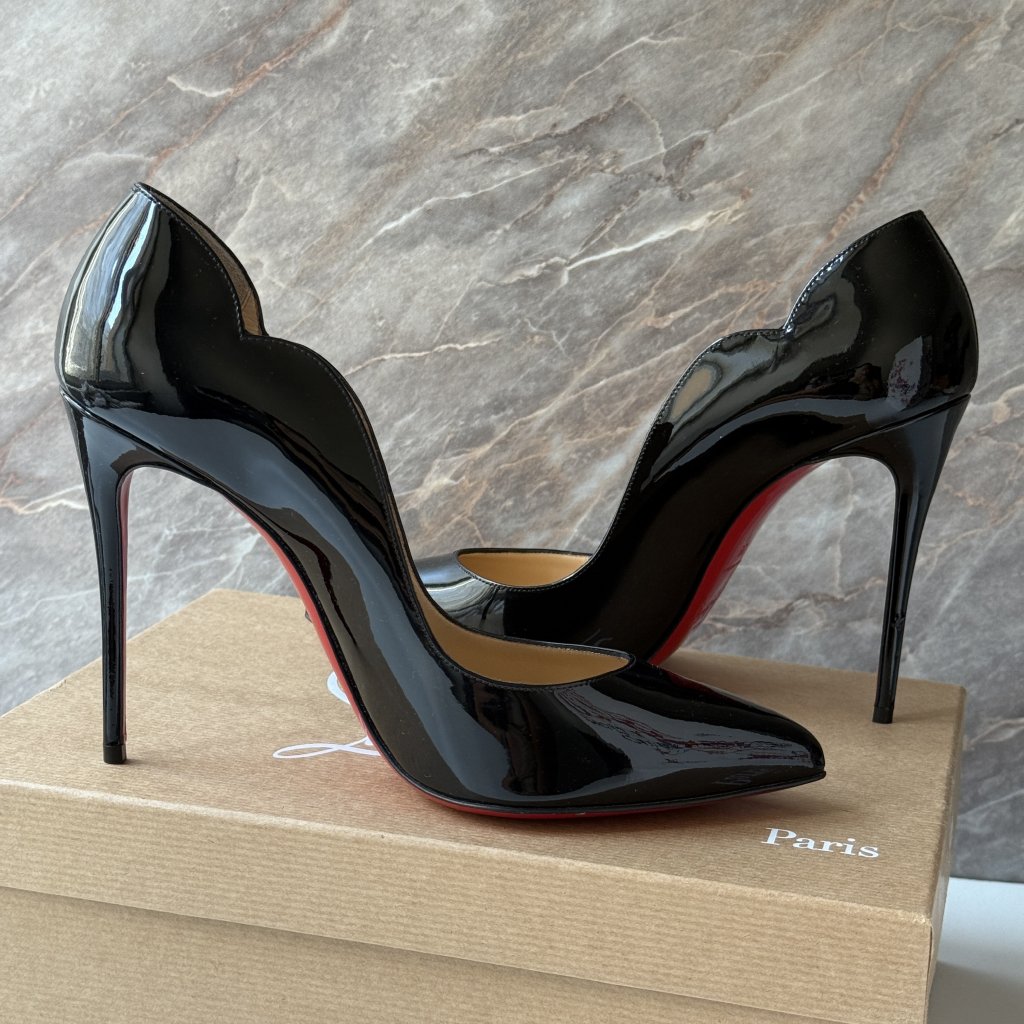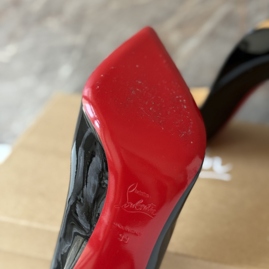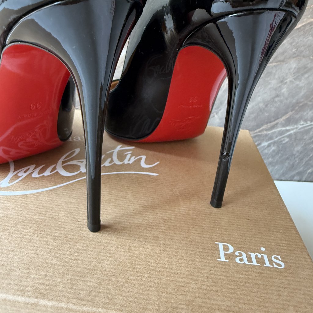Christian Louboutin černé lakované Hot Chick podpatky. Vel. 39.5. Nošené 1x.