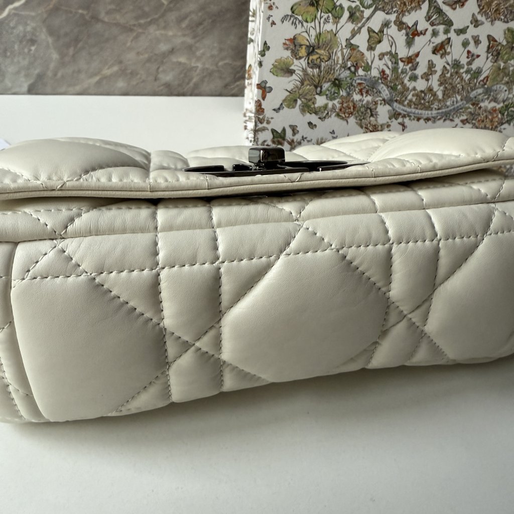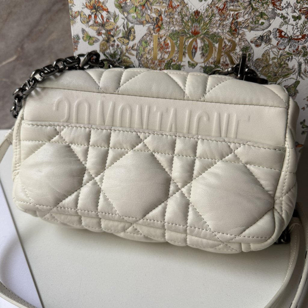 Dior bílá Caro kabelka. 21x14x7cm popruh 110cm. Nošené. S účtem a krabicí.