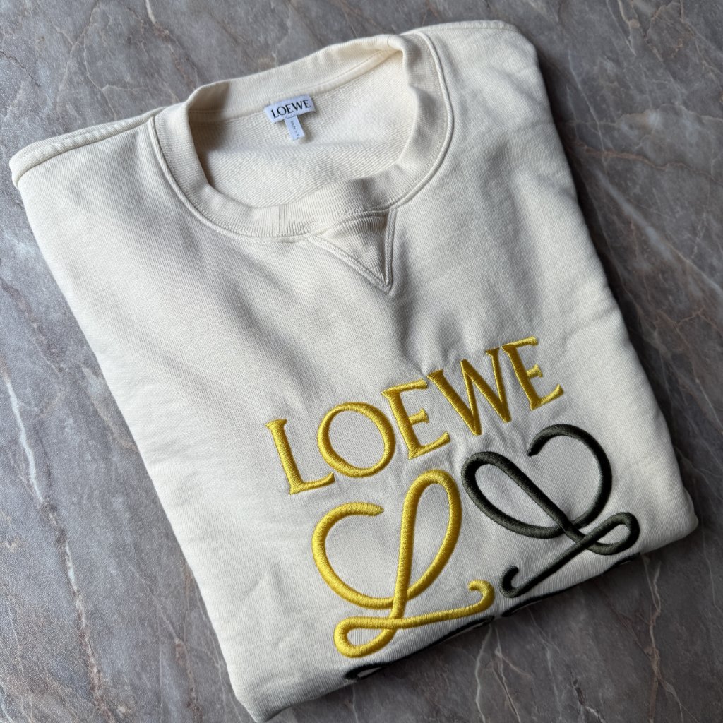 Loewe bílá mikina s logem. Vel. L. Nošené. Ramena 47 cm, délka 72 cm, obvod 55×2 cm.