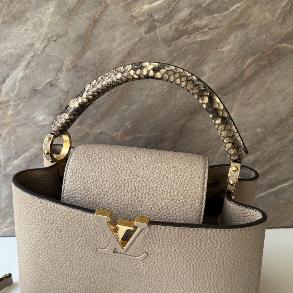 Louis Vuitton Capucines MM Galet Taurillon kabelka s python uchem. 30x20x10cm. Nošené minimálně.