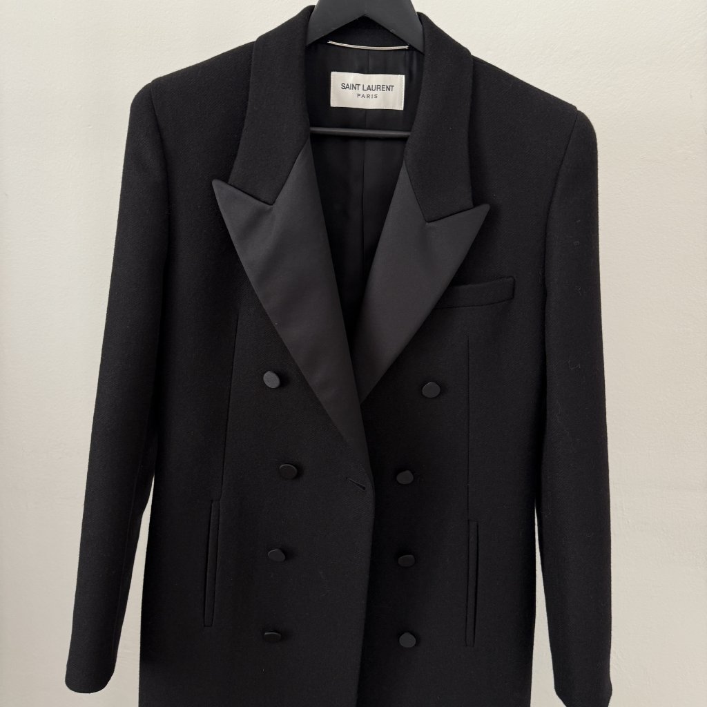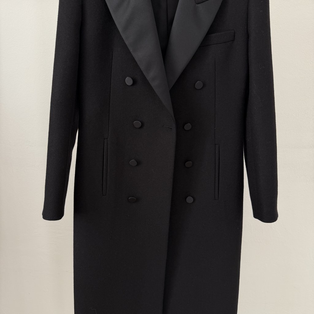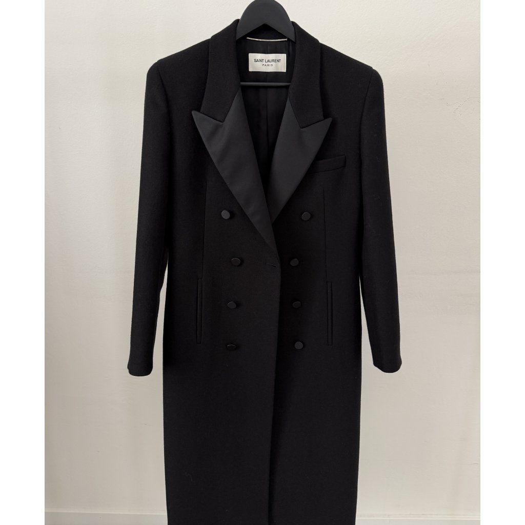 Saint Laurent kabát. Vel. 54 odpovídá S-M. Délka 124cm, ramena 44cm, obvod 46x2cm. Nošené.