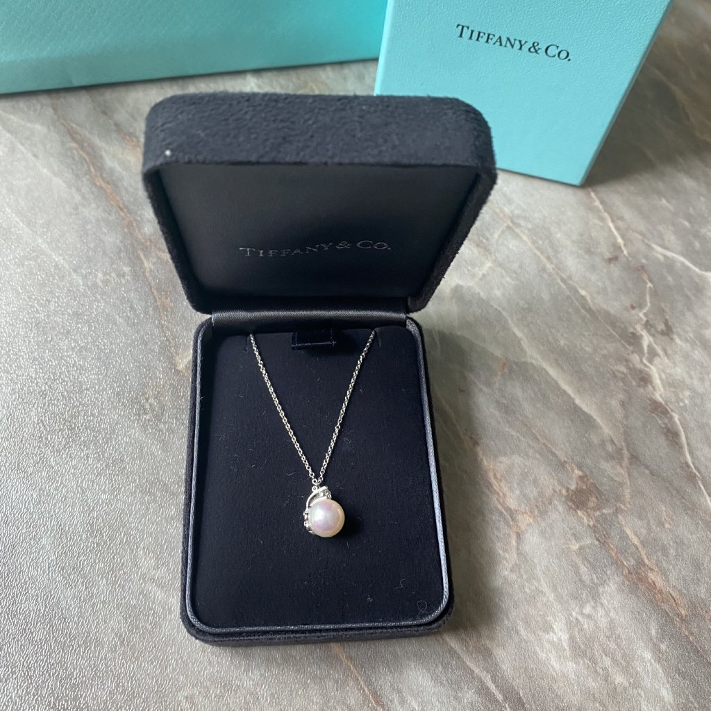 Tiffany&Co. řetízek s perlou a briliantem . Délka 41 cm. Nošené.