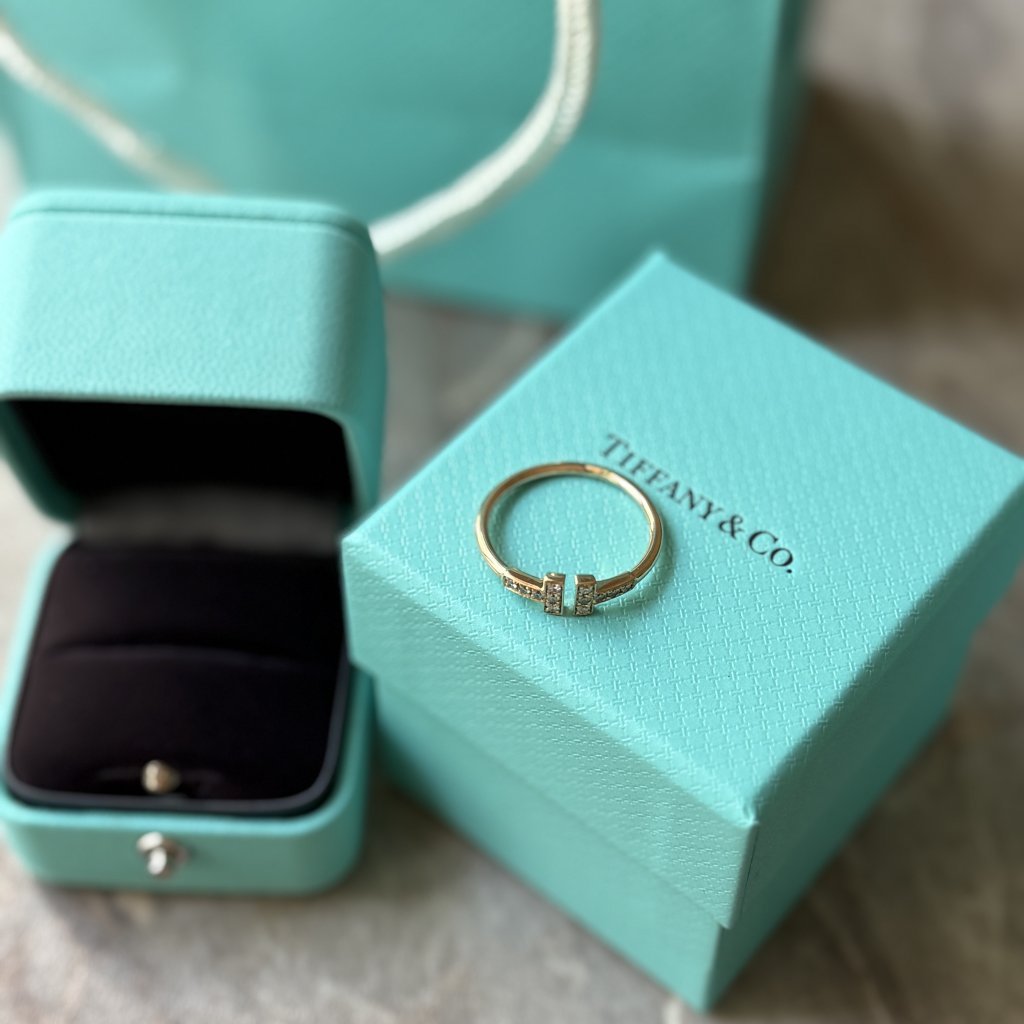 Tiffany and Co T wire prsten s brilianty, růžové 18kt zlato. Vel. 58. Nošený minimálně.